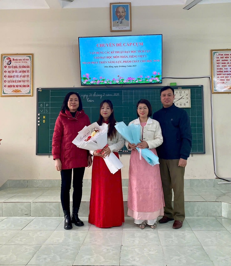 Để đổi mới phương pháp dạy học GV khối 2 trường Tiểu học Thuận Thiên đã thực hiện chuyên đề cấp Cụm với chủ đề: “ Vận dụng kĩ thuật dạy học tích cực vào dạy học môn Toán lớp 2 nhằm phát triển phẩm chất năng lực cho học sinh” và vận dụng thành công kĩ thuật “Mảnh ghép”, kĩ thuật “Lẩu băng chuyền”, sơ đồ tư duy, ứng dụng công nghệ AI trong tiết Toán, bài Ngày – Giờ. Với những hoạt động học tập đa dạng, phong phú, đã truyền được cảm hứng, tạo không khí lớp học sôi nổi, HS tự tin, chủ động tiếp thu kiến thức.Tiết dạy được PGD và đồng nghiệp đánh giá rất cao. Sau đây là một số hình ảnh về tiết dạy: