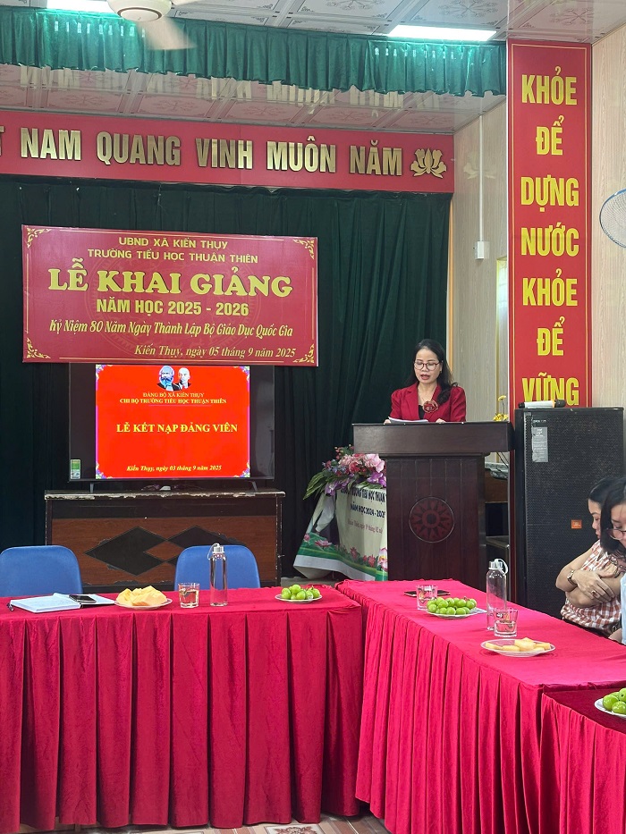 Buổi lễ kết nạp Đảng viên tại Trường Tiểu học Thuận Thiên đã thành công tốt đẹp. Ngày 03/9/2025 sẽ mãi là một dấu mốc đáng nhớ, đánh dấu sự trưởng thành của Chi bộ và sự lớn mạnh của lực lượng đảng viên, góp phần vào sự nghiệp xây dựng và phát triển của Trường.